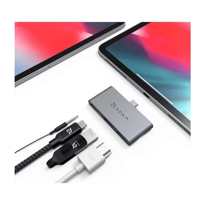 De Casa Hub i4 is speciaal ontworpen voor de iPad Pro en komt met krachtige prestaties. Je sluit de ADAM elements CASA Hub met gemak aan op de USB-C poort van de iPad Pro en kunt daarmee direct aan de slag. De USB-A poort is ideaal voor het aansluiten van randapparatuur of gebruik het voor gegevensoverdracht. Met de USB-C poort kun je bestanden overzetten naar een ander device en opladen tegelijk. Gebruik de 3.5mm audio jack voor het aansluiten van koptelefoons en oortjes. Dankzij de 4K HDMI poort kun jij haarscherpe beelden streamen op een externe tv of monitor!