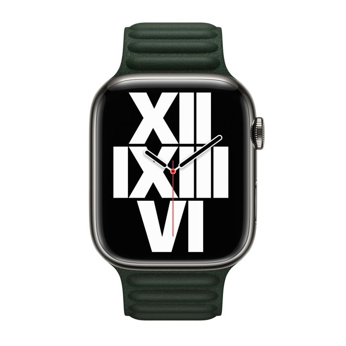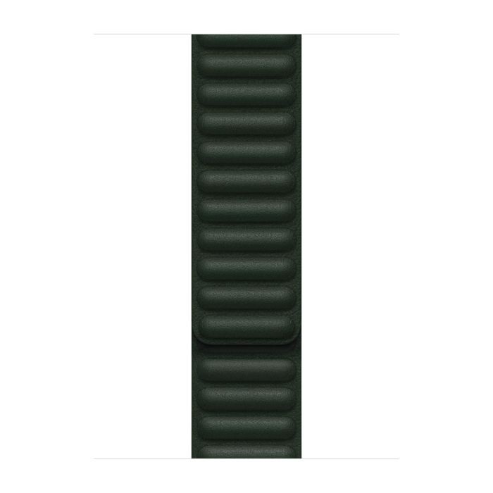 Apple Leather Link voor Apple Watch in de kleur Sequoia Green. Dit bandje is geschikt voor alle Apple Watch-modellen van 42 / 44 / 45 / 49 mm.