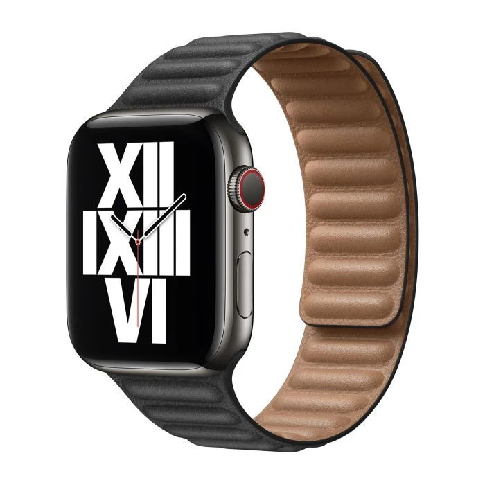Apple Leather Link voor Apple Watch in de kleur Black. Dit bandje is geschikt voor alle 42 / 44 / 45 mm Apple Watch modellen.