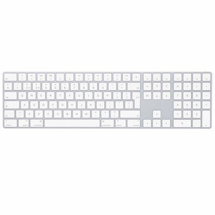 Deze Apple Magic Keyboard with Numeric Keypad QWERTY NL aluminium werkt draadloos op je Mac of computer. Sluit het toetsenbord aan via Bluetooth en er liggen geen kabels op je bureau. Het extra numerieke toetsenblok maakt snelle invoer van cijfers mogelijk en biedt extra ruimte voor de pijltjestoetsen.