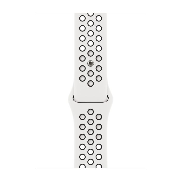 Gemaakt van een speciaal fluoroelastomeer met geperforeerde compressiemallen voor ademend vermogen, is de Nike Sport Band duurzaam en sterk, maar verrassend zacht. Het gladde, dichte materiaal valt elegant om je pols en voelt comfortabel aan je huid. Een innovatieve pin-en-tuck sluiting zorgt voor een strakke pasvorm.