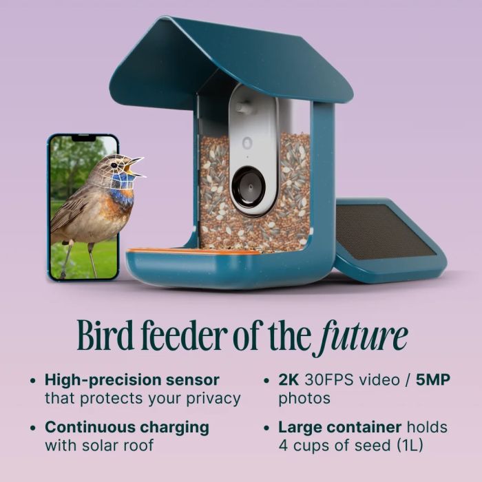 Bird Buddy Slim Vogelhuisje met camera en zonnepanelen 2.0 blauw