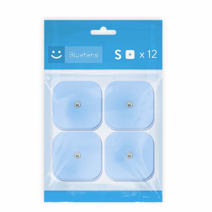Bluetens elektroden zijn tussen de 20 en 30 keer te gebruiken. Daarna zullen ze vervangen moeten worden om de spreiding en de geleiding van het Bluetens apparaat te optimaliseren. De elektroden zijn op wanneer ze niet meer plakken of als de randen gaan krullen. Deze elektroden hebben een afmeting van 5 bij 5 cm. In de verpakking zitten 12 stuks.