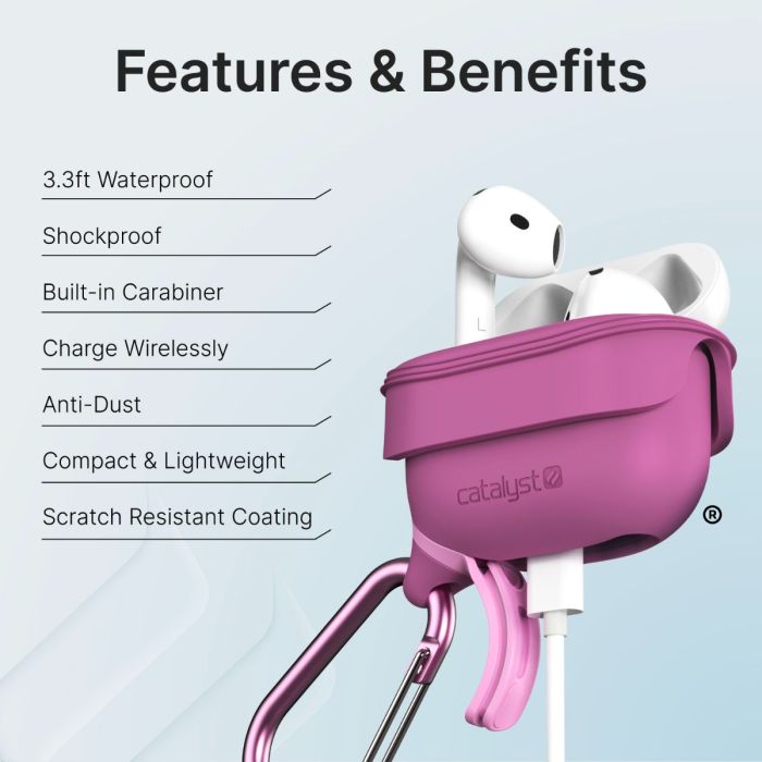 De Catalyst AirPods (4e generatie) Waterdichte & Schokbestendige Hoes biedt een perfecte combinatie van waterdichte, schokbestendige en krasbestendige bescherming met het gemak van draagbaarheid. Het is een onmisbare accessoire voor actieve en avontuurlijke AirPods-gebruikers.