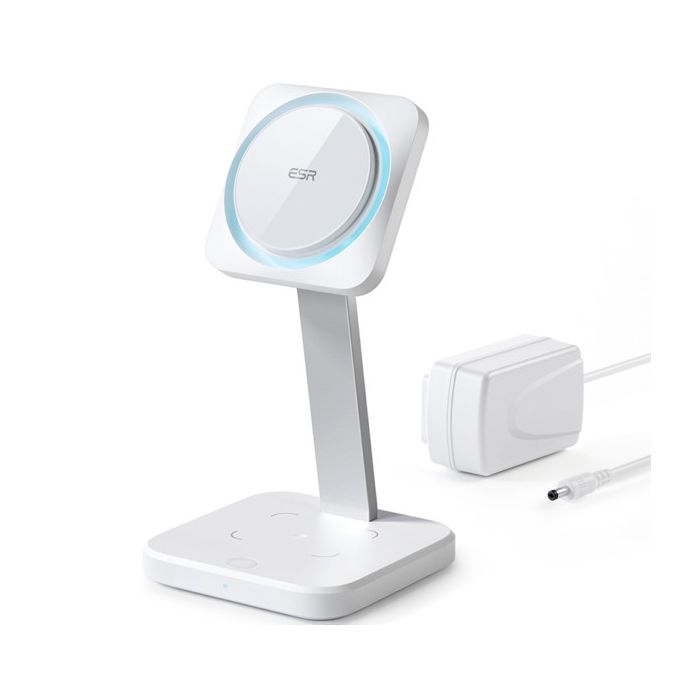 The ESR HaloLock 2-in-1 Wireless Charger utilizes CryoBoost technology to deliver fast and efficient charging for your devices. With up to 10W of power output, it ensures rapid charging speeds that save you valuable time. Whether you're charging your iPhone or AirPods, this charger provides a reliable and convenient power source. This 2-in-1 charger offers multiple charging options to suit your needs. The dedicated wireless charging pad is designed for your iPhone. Additionally, the specially designed slot accommodates your AirPods, allowing you to charge devices simultaneously in one convenient location. Designed specifically for Apple devices, the ESR HaloLock 3-in-1 Wireless Charger is compatible upward from iPhone 12 series and AirPods (Pro) cases that support wireless charging. The built-in HaloLock magnetic technology ensures a secure connection and precise alignment for optimal charging efficiency. Say goodbye to tangled cables and enjoy the simplicity of wireless charging.