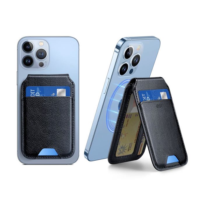 ESR HaloLock Vegan Leather Wallet Stand for iPhone with MagSafe Black Sheepskin