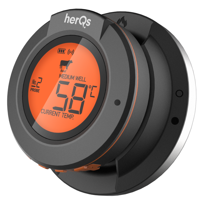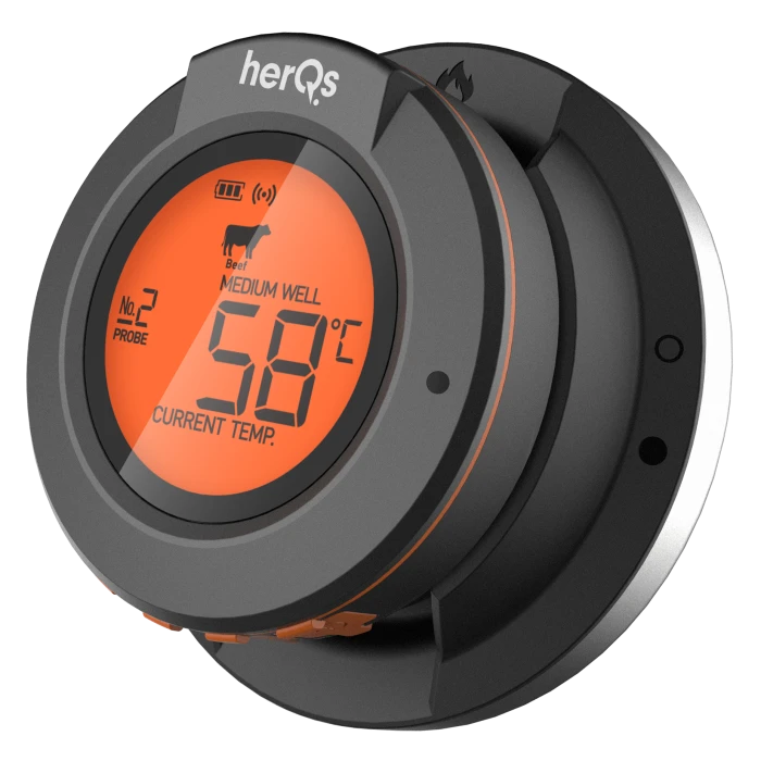 De HerQs Connected Digital Dome Thermometer is een draadloze thermometer die verbinding maakt met je mobiele apparaat via Bluetooth. Het apparaat biedt nauwkeurige temperatuurmetingen tot 300 graden Celsius en handige functies zoals timerinstellingen en voedselprofielen om je te helpen de perfecte maaltijd te bereiden.