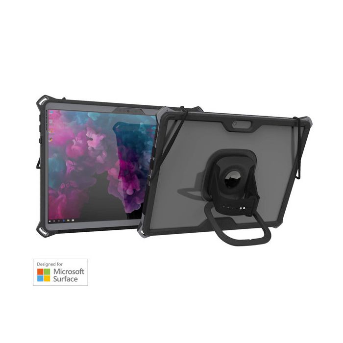 De aXtion Edge + MP voor de Microsoft surface pro 8 is een stevige hoes voor industrieel gebruik. De case beschermt de tablet tegen vallen en stoten. Deze tablethoes heeft ingebouwde roterende handriem en een multi-angle handgreep. Het is ook te gebruiken met de surface type cover en heeft bandjes om de cover op zijn plaats te houden. Het is een hoes waarmee je mobiel bent en het dus onderweg toegankelijk is voor bijvoorbeeld bouw, energie en nutsbedrijven, logistiek en transport.