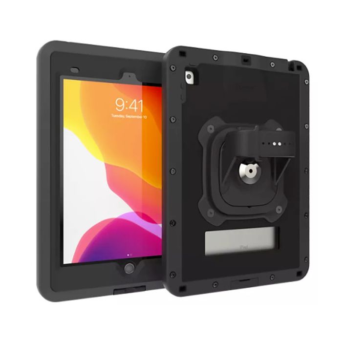 De Joy Factory aXtion Pro MP iPad 10.2 inch (2019/2020/2021) is een robuuste, waterdichte hoes van industriële kwaliteit met MagConnect, draaibare standaard en handriem.