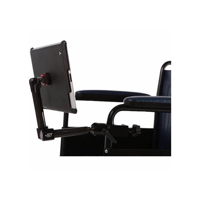De Joy Factory MagConnect Charis Wheelchair Mount voor iPads en tablets kun je stevig bevestigen aan ieder metalen oppervlak van een rolstoel zo creëer je namelijk een sterke installatie die tegen een stootje kan. De magneetbevestiging bestaat uit vier sterke aardemagneten die ideaal zijn voor verschillende toepassingen. De mount is zeer draagbaar en geschikt voor nauwe ruimtes waar grote installaties onmogelijk zijn. De magneetbevestiging wordt ook geleverd met een standaard van koolstofvezel, een kenmerkend materiaal van The Joy Factory.