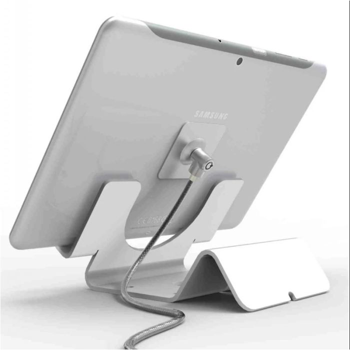 De Maclocks beveiligingsstandaard is een universele stand voor o.a. iPad en Galaxy en heeft een beveiligingskabel van 1,8 meter lang. De Maclocks stand is gemaakt van aluminium. Door dit ontwerp is de tablet beveiligingsstandaard zowel voor Galaxy Tab en iPads te gebruiken. De tablet standaard met beveiligingskabel is geschikt om op een tafel of andere ondergrond te worden verankerd. Daarnaast kan de beveiligingskabel door de onderkant van de tablet stand worden gehaald.
