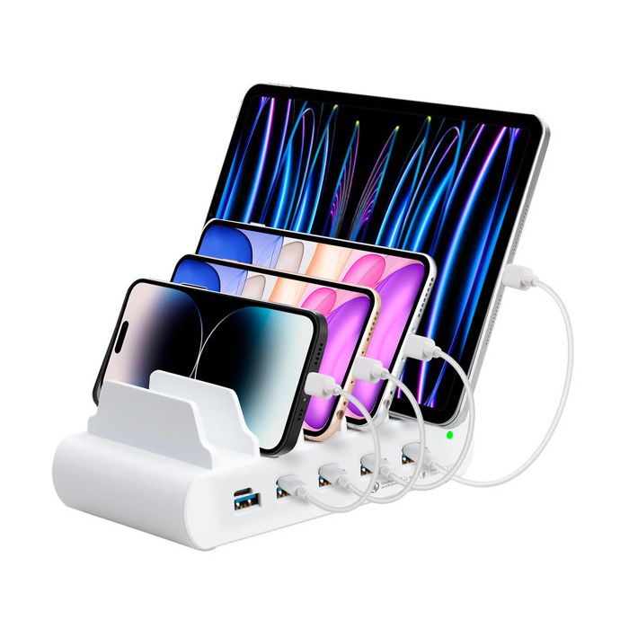 Het Musthavz Familie Laadstation 150W in Wit is de ideale oplossing voor het gelijktijdig opladen van meerdere apparaten in een handig en ruimtebesparend ontwerp. Dit laadstation is ontworpen om te voldoen aan de behoeften van gezinnen, kantoren en andere gemeenschappelijke ruimtes, en biedt snel en efficiënt opladen voor verschillende elektronische apparaten.