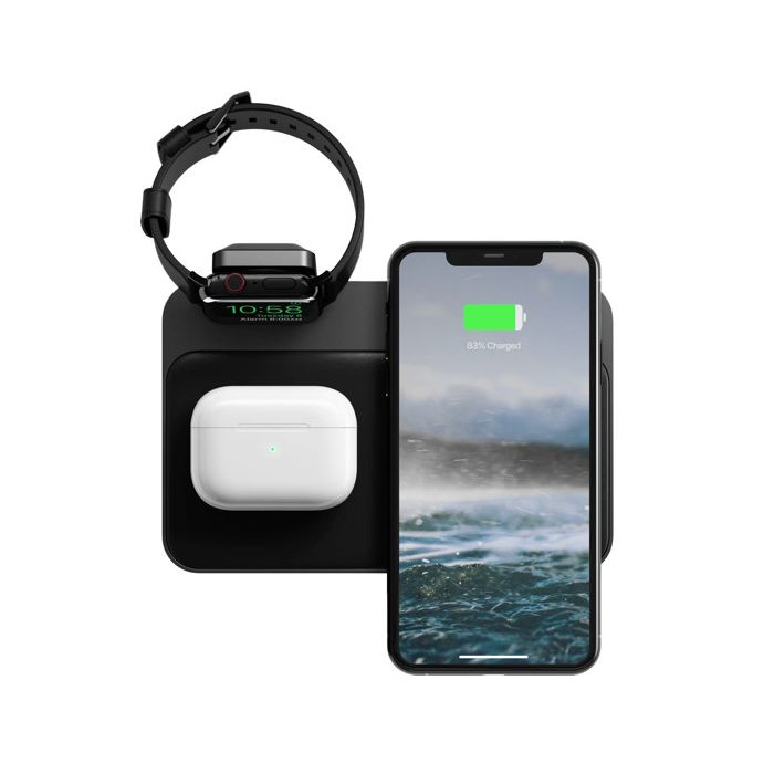 De Nomad Base Station Apple Watch edition V2 is een geavanceerd draadloos oplaadstation waarmee je je iPhone, AirPods case en Apple Watch tegelijkertijd draadloos kunt opladen.