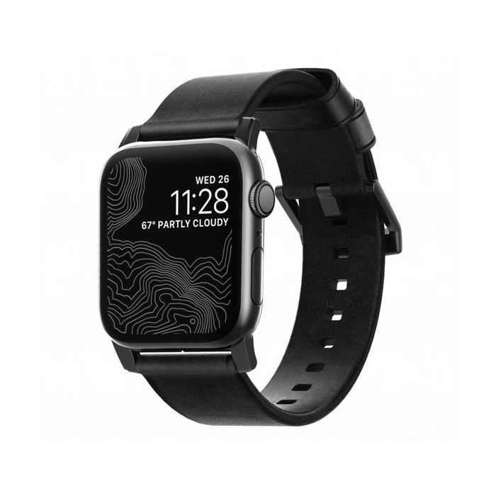 Nomad modern slim leather strap Apple Watch 42mm / 44mm / 45mm / 49mm zwart / zwart