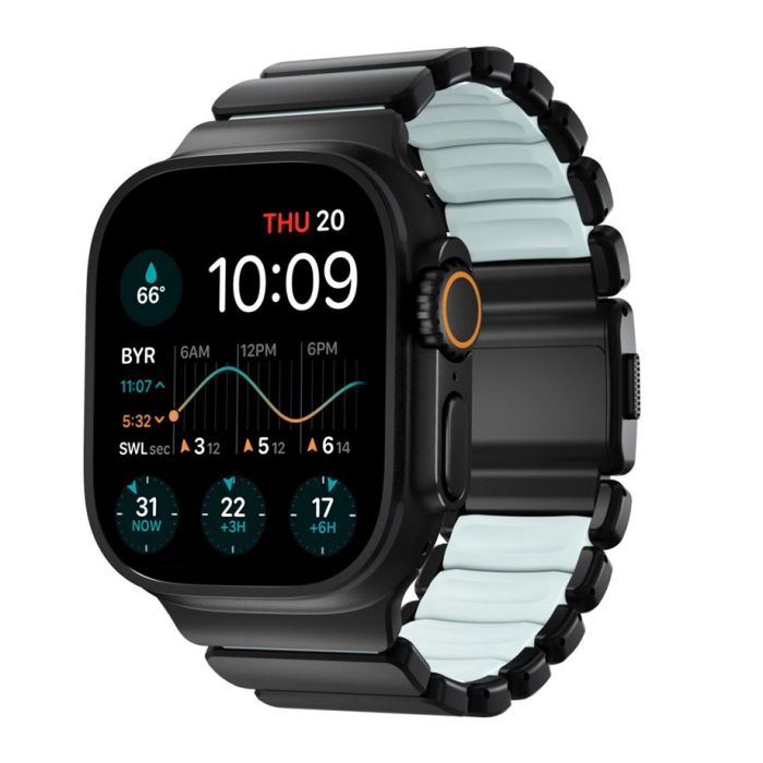 Nomad Stratos Titanium Bandje Apple Watch 44mm / 45mm / 46mm / 49mm Zwart Icy Blue Glow