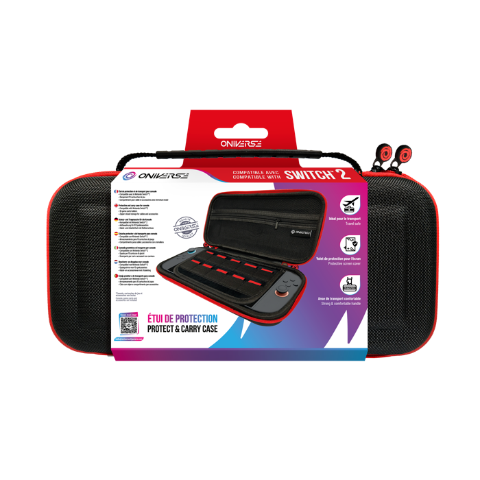 De Oniverse-koffer is ontworpen voor maximale draagbaarheid en heeft een comfortabel handvat zodat je hem gemakkelijk kunt dragen. Of je nu op reis gaat, onderweg bent of gewoon gaat gamen, deze etui biedt een veilige en stijlvolle manier om je Nintendo Switch en accessoires te vervoeren.