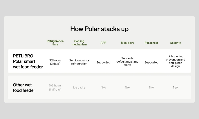 De dispenser verbruikt efficiënt minimaal energie met een nominale stroom van 60W. We raden aan om de natvoerdispenser in combinatie met een PETLIBRO automatische droogvoerdispenser te gebruiken, zodat je de voeding van droog en nat voer optimaal kunt combineren (een aanpak die door 75% van de huisdierbezitters wordt gevolgd).