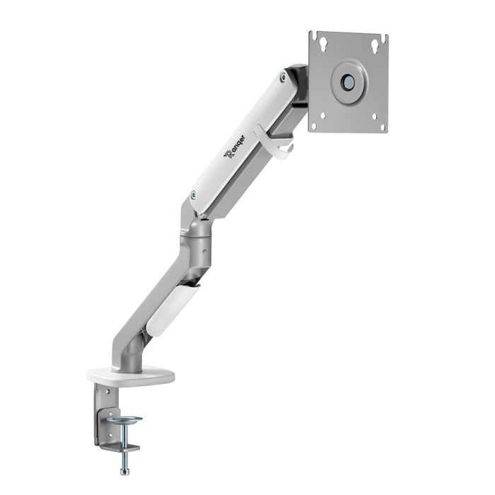 De Ranqer Monitor Arm Pro Single in wit verbetert je werkruimte met een stijlvolle afwerking en volledige aanpassingsmogelijkheden voor een ergonomische monitoropstelling. Met stevige bouw en geavanceerde functies is deze monitorarm ideaal voor verschillende doeleinden, van kantoorwerk tot gaming.