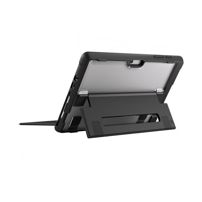 De STM Dux case heeft een uniek en strak ontwerp en beschermt tegelijkertijd je Microsoft Surface Go. Door de transparante achterzijde blijft de schoonheid van uw Surface Go zichtbaar. De stevige constructie van TPU en polycarbonaat beschermt tegen onbedoeld vallen. Verder heeft de case rubberen voetjes die voorkomen dat het apparaat op een glad oppervlak weg schuift. Het nieuw ontworpen scharnierstandaard zorgt voor onbeperkte kijk- en typehoeken. Bovendien kunt u het apparaat eenvoudig installeren of verwijderen. Al met al is dit een van de beste cases voor uw Surface Go tablet.