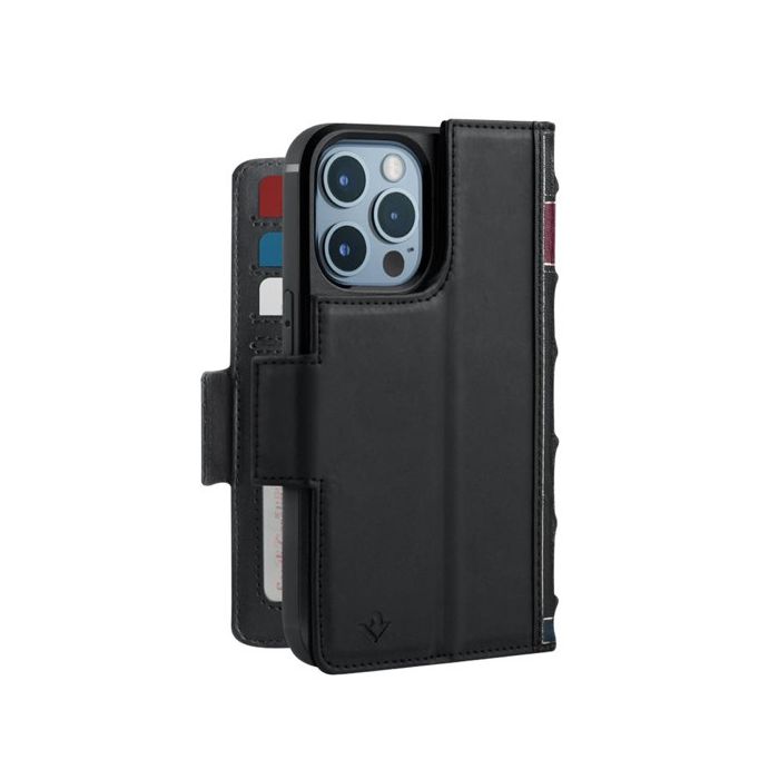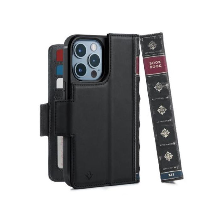 De Twelve South BookBook iPhone 13 Pro zwart is een prachtig ontworpen portemonnee case met handsfree standaard. Het hoesje komt met een design van een vintage leren boek. BookBook heeft vakjes voor je ID, pasjes en geld.