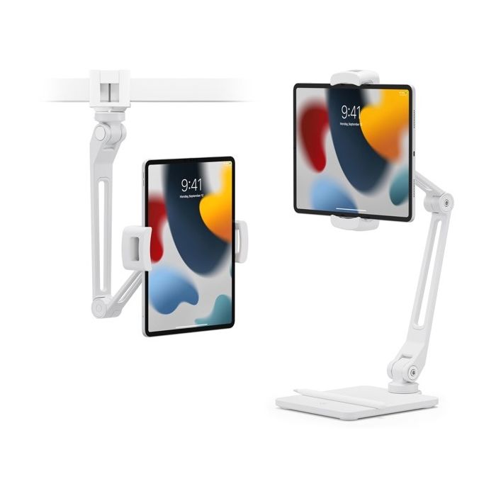 De Twelve South HoverBar Duo Mount Bureau/Klem Opvouwbare Standaard wit is een veelzijdige en slanke standaard ontworpen om je tablet of telefoon in de perfecte kijkhoek te houden. Met een stevige bureausteun of klemoptie biedt hij flexibele positionering voor comfortabel gebruik, of je nu werkt, video's bekijkt of videochat. Dankzij het opvouwbare ontwerp kun je hem gemakkelijk opbergen, waardoor hij ideaal is voor elke werkruimte.