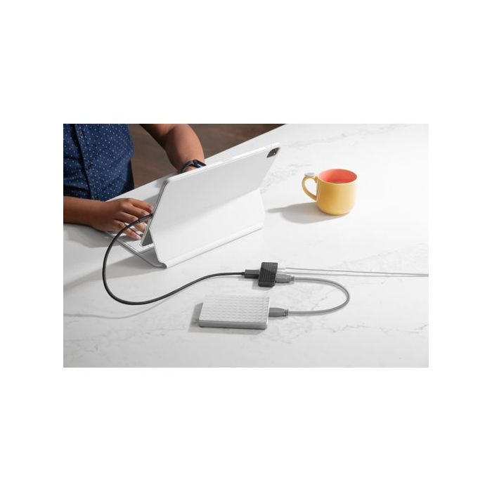Met de Twelve South StayGo Mini USB-C Hub breid je het aantal poorten op je iPad aanzienlijk uit. De audio jack-ingang (voor je koptelefoon), USB-A poort, USB-C poort en de HDMI-ingang maken het nog makkelijker om te fotoshoppen, video's te bewerken of je werkzaamheden te doen. Je kunt de hub eenvoudig direct aan je iPad koppelen of via een kabel (0.5m), zoals afgebeeld op de foto's.