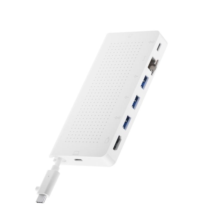 De Twelve South StayGo USB-C Hub wit houdt je bureau schoon en geeft je toegang tot poorten als HDMI, Ethernet en USB-A. De hub heeft een ingebouwde korte USB-C kabel en wordt geleverd met een langere 1 meter lange USB-C kabel.