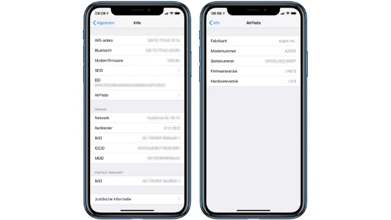 Het modelnummer vind je op dezelfde manier als het serienummer. Zorg er dus voor dat je AirPods verbonden zijn met je iPhone en ga naar Instellingen > Algemeen > Info > Airpods.